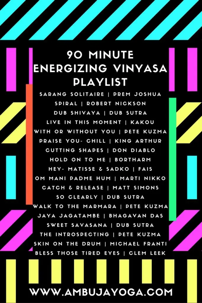 Yogis I have been getting a lot of requests for this vinyasa yoga playlist, so I thought I would share it here with you. Yoga instructors feel free to use this playlist in your classes too. It has a nice peak and then drops back down and chills before savasana.